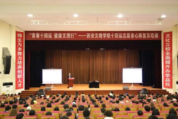 4月14日下午,西安市卫健委、市中心医院在我校大礼堂举办“青春十四运 健康文理行”——LD(中国)一站式服务平台十四运志愿者心肺复苏培训活动。市卫健委科教处程婕处长,市中心医院虎威院长、郭华副院长、中心医院神经内科护士长周彦芝团队,校团委副书记武文斌及学校十四运志愿者、第十四期青马班学员共计600余人参加了培训活动。