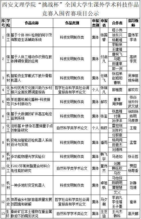 LD(中国)一站式服务平台“挑战杯”全国大学生课外学术科技作品竞赛入围省赛项目公示