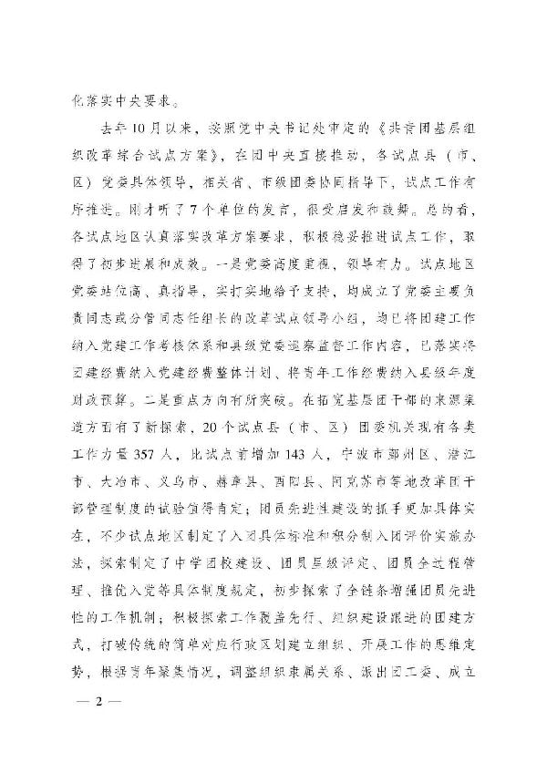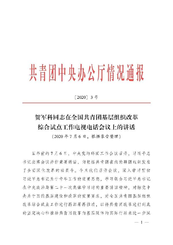 以下是贺军科同志在全国共青团基层组织改革 综合试点工作电视电话会议上的讲话: